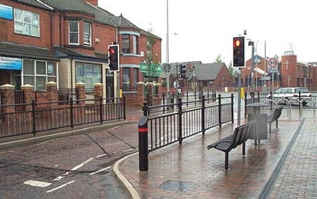 - Placement of ornate street furniture, including: bus shelters, cycle stands, seating, litter bins, lighting columns, pedestrian guard-railing, trees and tree furniture.